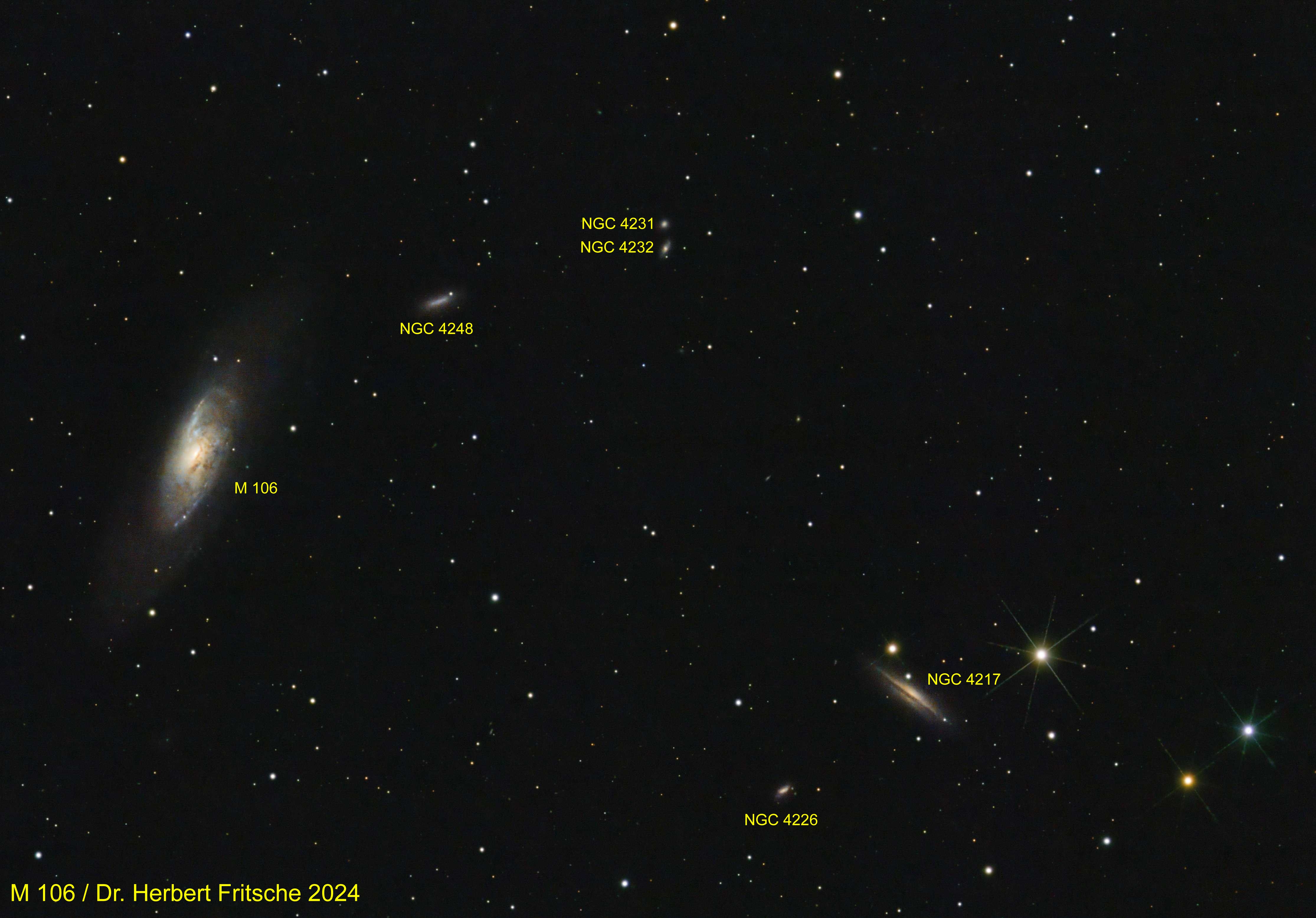 Messier 106 oder NGC 4258 ist eine Balken-Spiralgalaxie.