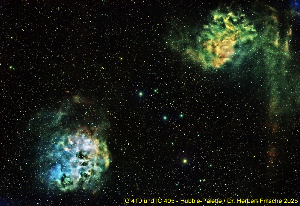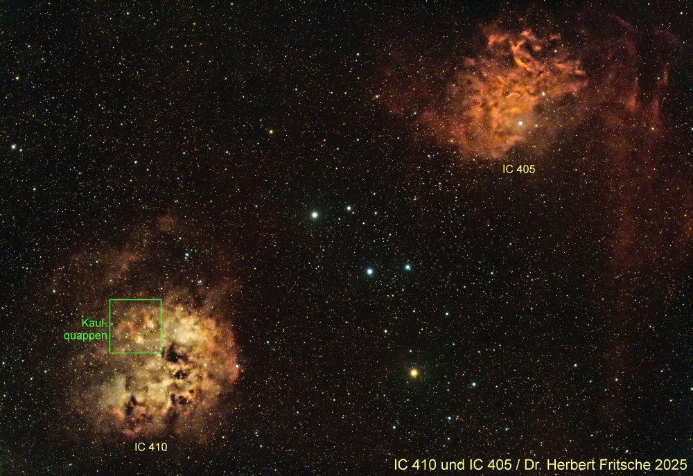 IC 410 ist ca. 11000 Lj und IC 405 ist ca. 1320 Lj entfernt.
