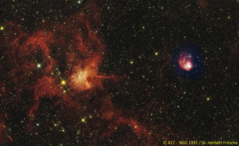 In unmittelbarer Umgebung befindet sich der Emissions- ud Reflexionsnebel NGC 1931, der ca. 10 000LJ entfernt ist.