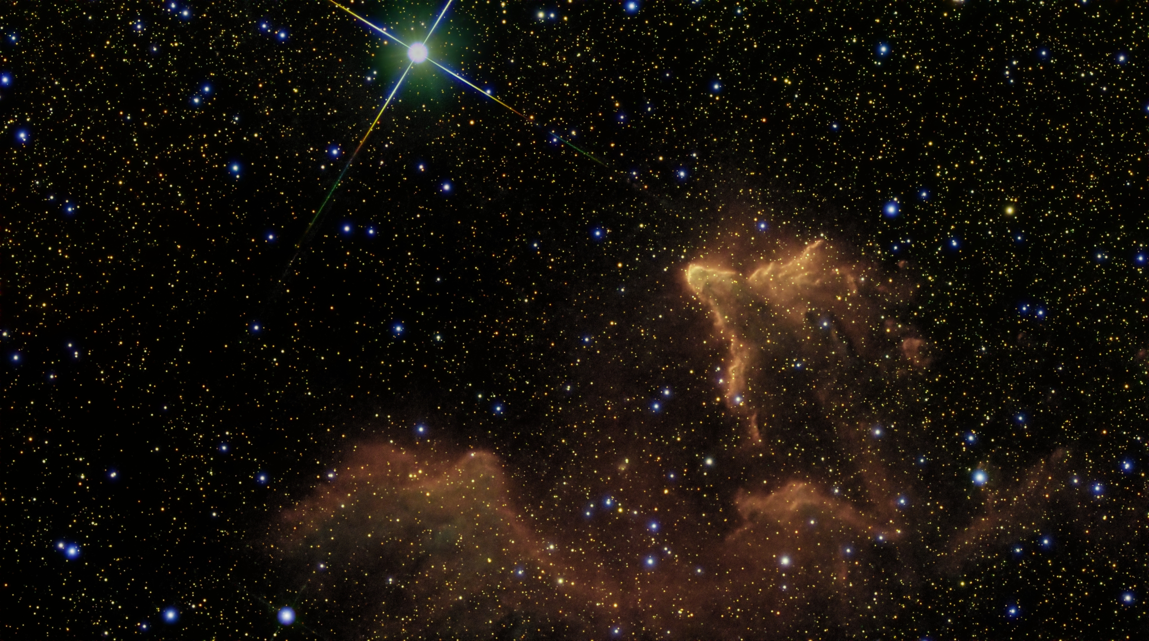 In einer Entfernung von ca. 550 LJ befindet sich der helle Stern Gamma Cassiopeiae.