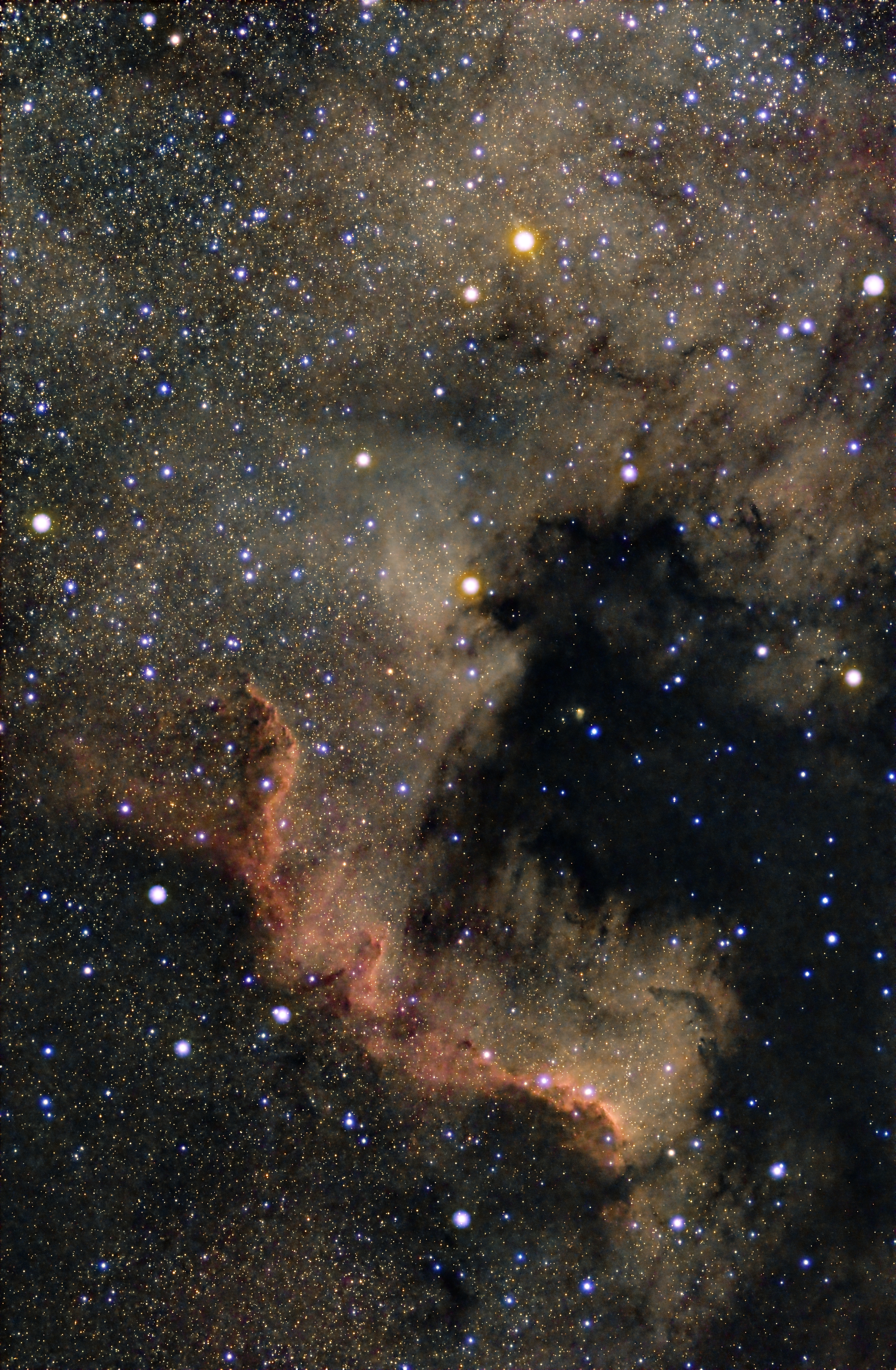 NGC 7000, wegen seiner Form auch als Nordamerikanebel bekannt, ist ein diffuser Gasnebel im Sternbild Schwan